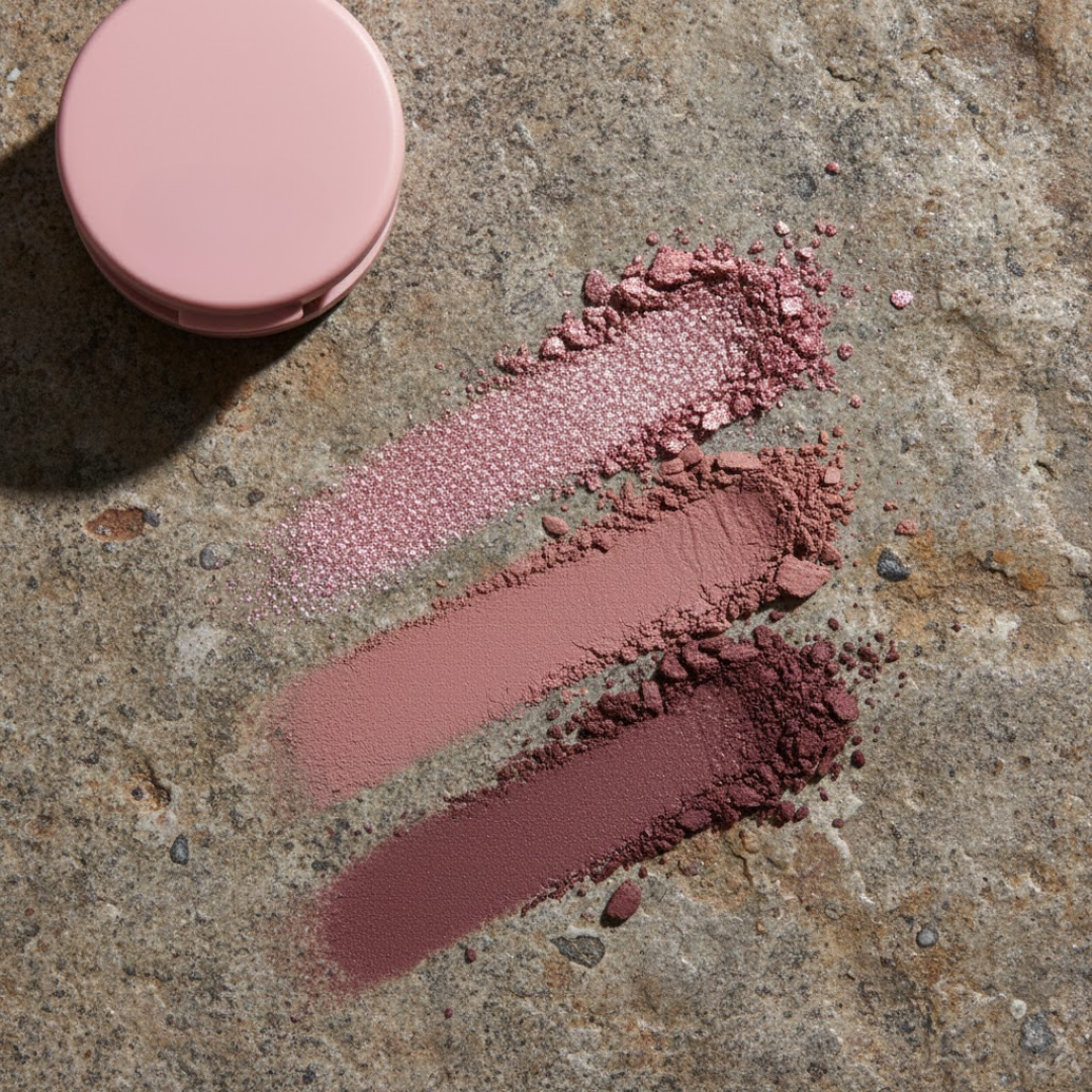 Start with the light shade as a base, apply the medium shade for definition, and finish with the shimmer to add dimension. Blend as much or as little as you like.