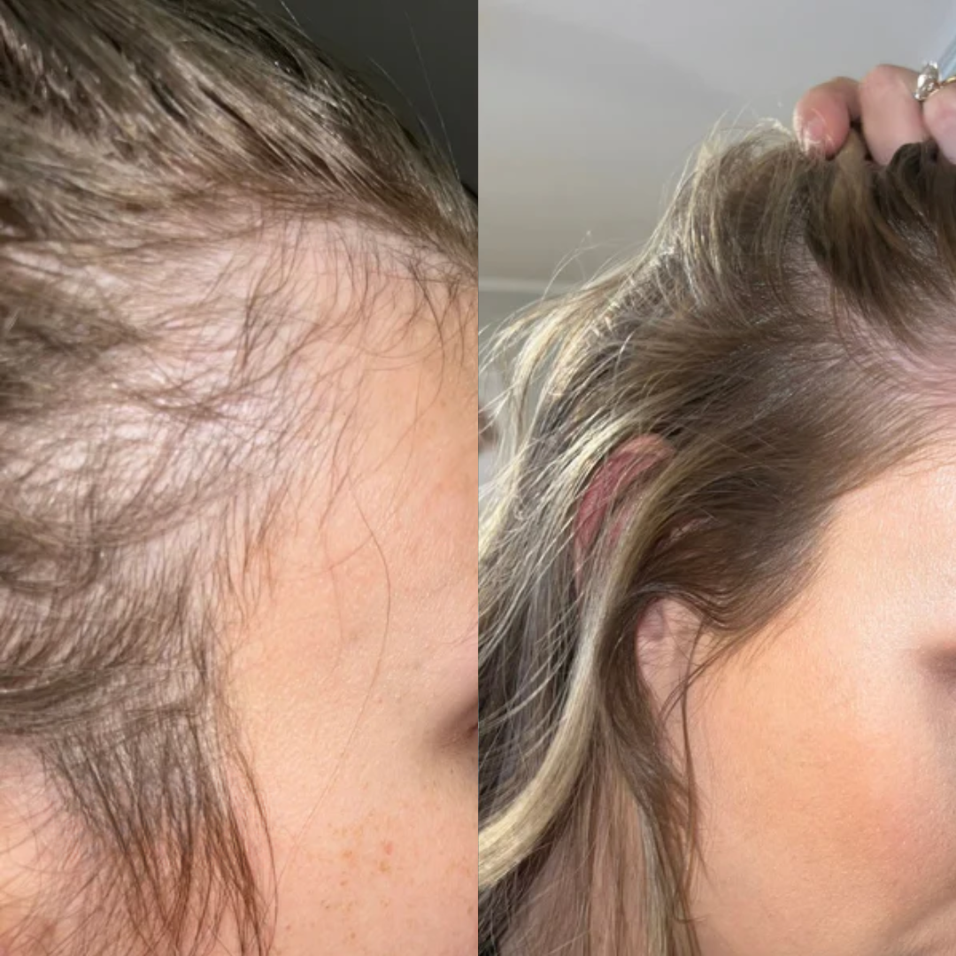 Your hair recovery journey is fully protected by our 30-day guarantee. If you’re not relieved when the shower drain finally clears… if you don’t feel that spark of hope when baby hairs start to show… or if your stylist doesn’t say,“Your hair feels so much thicker, ”then at any time in the next 90 days, just let us know and we’ll refund every single penny. Because you deserve to feel confident, radiant, and like yourself again—without the worry of thinning or shedding holding you back.